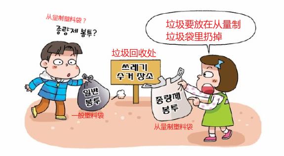 “垃圾從量製”顧名思義就是要量化垃圾,根據垃圾(jī)的量來收取處理費用的一種製度。這(zhè)個製度規定市民們要到自己所住區域的指定商店去購買盛放垃圾的專用垃圾袋,將(jiāng)垃圾91蝌蚪九色裝(zhuāng)在不同類別的袋子(zǐ)中,例如:食品(pǐn)垃圾袋、一般垃圾(jī)袋等。垃圾也不是隨(suí)時(shí)隨地可以扔,要在規定的時間內,用專用(yòng)垃圾袋(dài)把垃圾封好並投放到規定地點,否則市民還會麵(miàn)臨相應罰(fá)款。專用垃(lā)圾袋的大小不一,容量越大,價格也越貴。也就是說,韓國市民們需要花錢購買扔垃圾的塑料袋!並且價格還不便宜,經過2017年年(nián)初的漲價之後,目前每個家用食品垃(lā)圾袋的價格在人民幣(bì)6毛到6元之間,每個(gè)一般垃圾袋的價格在人民幣8毛到15元之間。