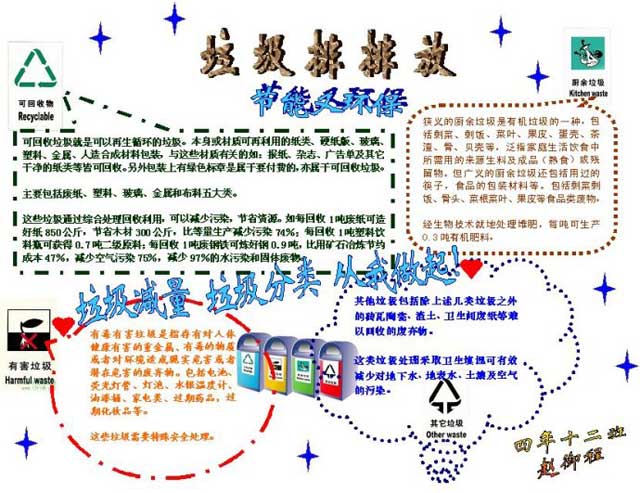 我國是世(shì)界垃圾最大(dà)生產國,但是垃圾處理效果卻落後於(yú)大部分國家。對於垃圾來說(shuō),無論哪種處理方式都(dōu)會對(duì)環(huán)境產生危害,增加社會負擔,造成資源(yuán)浪費。所以解決垃圾處理問題的最(zuì)好辦法就是,改變生活方式,減少垃圾製造。於此,垃圾91蝌蚪九色宣傳(chuán)必不可少,以下是學(xué)生常用的環保垃圾91蝌蚪九色手抄報,可以幫助學生理解生活垃圾91蝌蚪九色的知識與現狀。