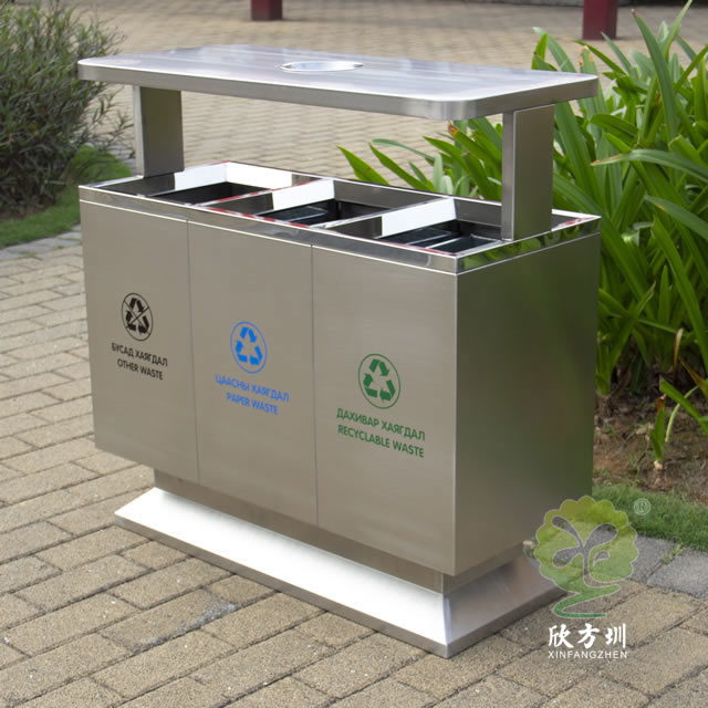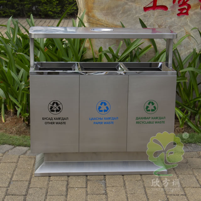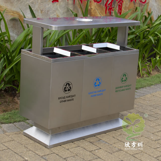 出口戶(hù)外方形不鏽鋼分(fèn)類垃圾箱產品詳情: