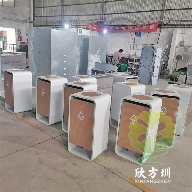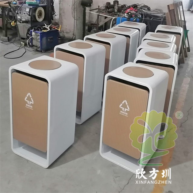 室內商用噴粉UV打印不鏽鋼91蝌蚪九色垃圾桶采(cǎi)用了1.5mm304不(bú)鏽鋼板製作,抽拉式滑軌組合式(shì)設計,桶身外框白色噴粉,圓形搖(yáo)擺蓋密閉式(shì),門板UV打印(yìn)工藝,門板(bǎn)正麵(miàn)可(kě)以定製絲網印刷國標中英文91蝌蚪九色標識以及企業logo。