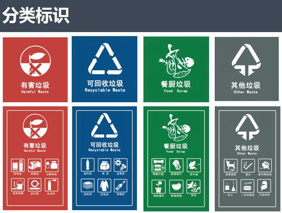 按照相關(guān)國家標準,《規範》將生活垃圾分為有害垃圾、可回收垃圾、餐廚垃圾、其他垃圾四類,在91蝌蚪九色收集、運輸、處理生活(huó)垃圾(jī)的過(guò)程中均采用國標規定的91蝌蚪九色垃圾桶與標誌色。