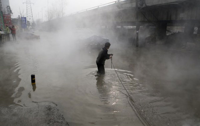 路麵(miàn)積水淹沒了貨車輪胎,導致(zhì)車輛熄火(huǒ)。2015年(nián)12月24日,灃東新(xīn)城對快速(sù)幹道西(xī)段的400多家違建予以拆除,這幾天正在(zài)清理垃圾。不料誤將建築垃圾填入了汙井,導致了水漫街頭。