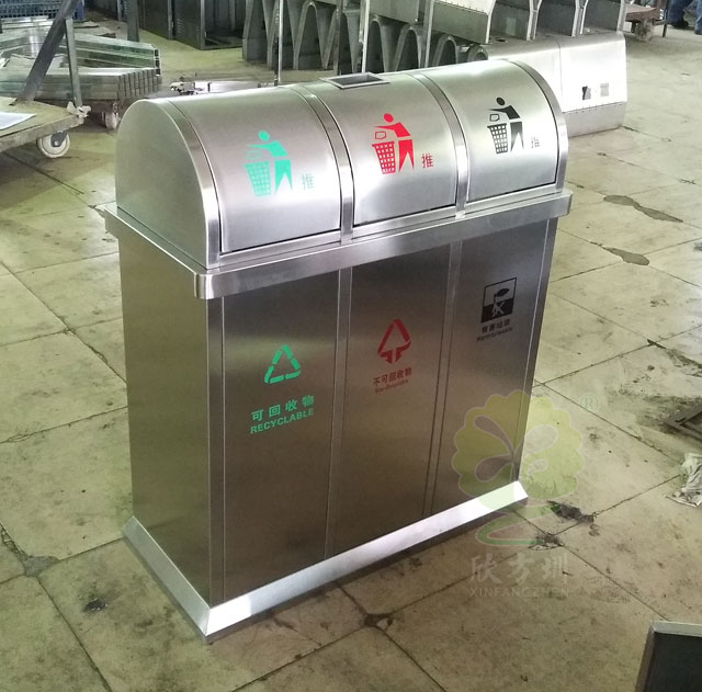 鋼製噴塑分(fèn)類垃圾桶:使用優質鋼木剪裁、衝孔、折(shé)彎、組裝、焊接、打磨、噴(pēn)塑、絲印而成,外表美觀,功能實(shí)用,適用於街道、學校、景區、廣場、小區等各種戶外場所。