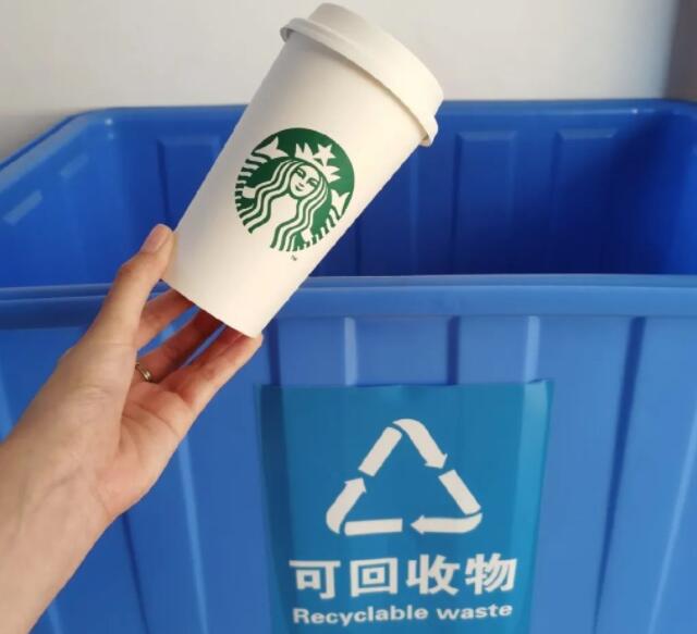 紙杯,塑料杯和杯蓋扔(rēng)進可回收物桶