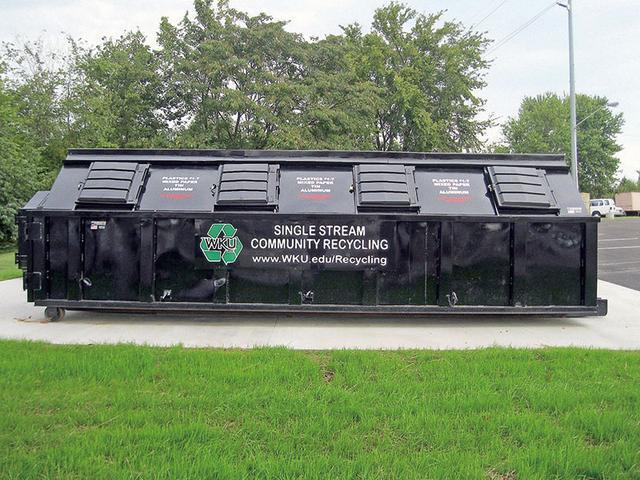 美國西肯塔(tǎ)基大學校園裏的(de)單流回(huí)收垃圾桶,從(cóng)標誌上看主(zhǔ)要(yào)混合放紙張和錫、鋁等金屬。