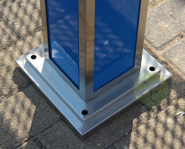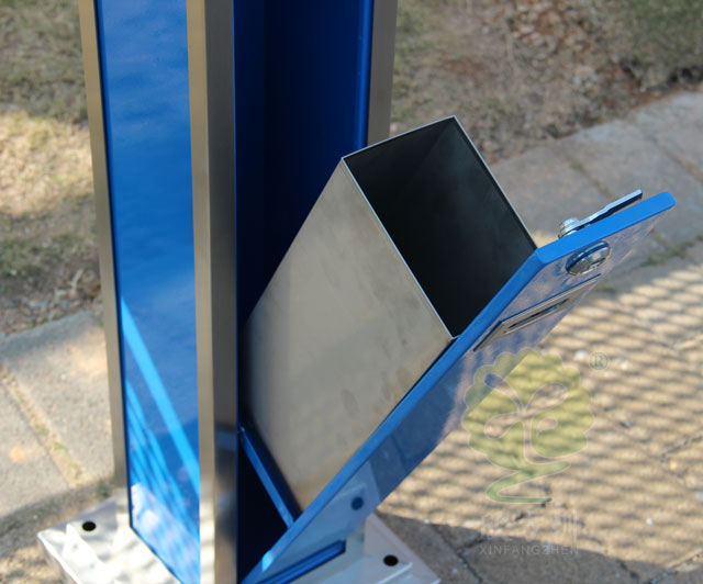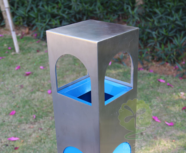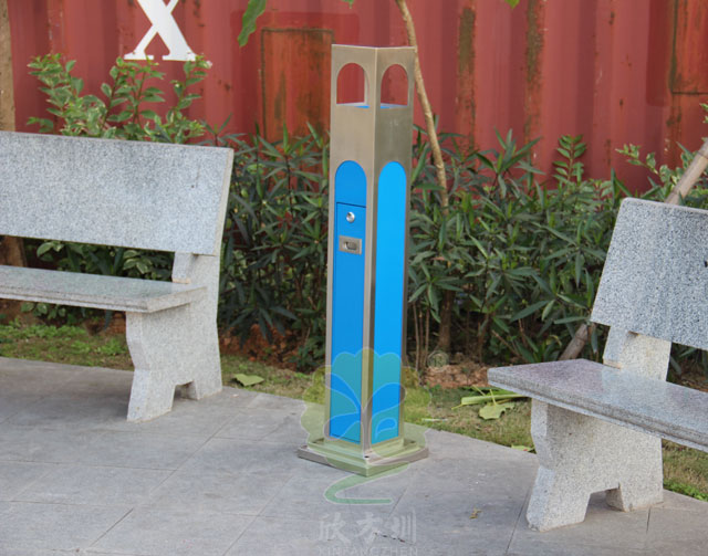 C635戶外吸煙柱采用(yòng)優質不鏽鋼剪切、組裝、焊接、絲印而成,不鏽鋼具有很好(hǎo)的堅固耐用,防水(shuǐ)防鏽,時尚美觀作用。它包括外套管、支座、內套管(guǎn)、煙灰盒、底座。外套管(guǎn)的底端固(gù)定連接在支座上,外套管的側壁上(shàng)設(shè)有煙蒂置入口,內套管用於集(jí)中收納從外套(tào)管(guǎn)的(de)煙(yān)蒂置入口投入的煙蒂,內套管設在(zài)外套管的內(nèi)管腔中,內內套管的開口端朝上,煙蒂置入口(kǒu)與內套管(guǎn)的開口相連(lián)通,以使得從煙蒂置入口(kǒu)投入的煙蒂可從內套管的開口(kǒu)端落(luò)入到內(nèi)套管的內管腔中;