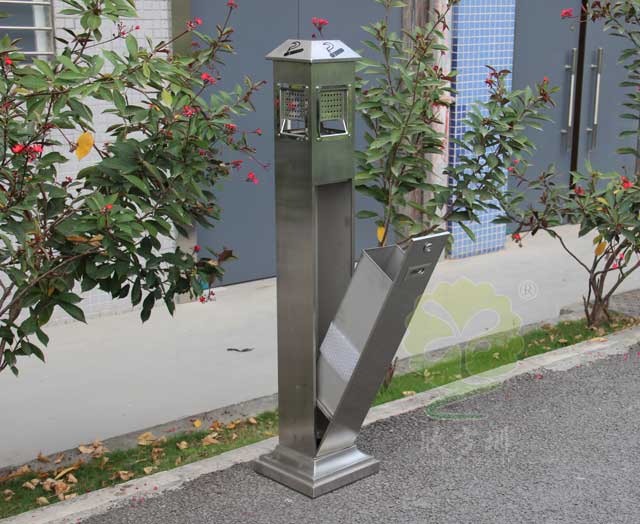 C-279C金屬煙灰(huī)柱采用優質不鏽鋼剪切、組裝、焊接(jiē)、絲印而成,它包括外套管、支座(zuò)、內套管、煙灰盒、底座。外套管的底端(duān)固定連接在支座上,外(wài)套管的側壁上設(shè)有煙蒂置入口,內套(tào)管用於集中收納從外套管的煙蒂置入口投入(rù)的煙蒂,內套(tào)管(guǎn)設在外套管的(de)內管腔(qiāng)中,內內套管的開口端朝上,煙蒂置入口與內套管的開口相連通,以使(shǐ)得從煙蒂(dì)置入口投入的煙蒂可從內套管的(de)開口端落入到內套管的內管腔中;