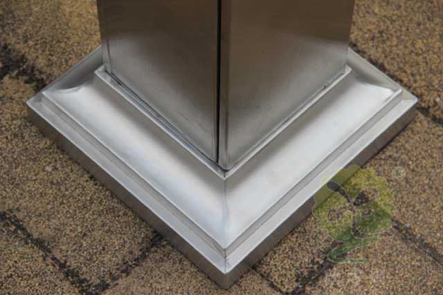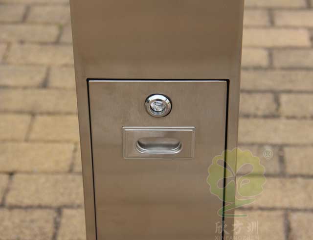 C-279C金屬煙(yān)灰柱規格250*250*1185mm,呈(chéng)長條傳,側麵有三(sān)角鑰匙,可以打開側門,方便清理位於內(nèi)套(tào)管的煙蒂煙灰,底座分兩種(zhǒng),一種是室內采用的,在底部裝(zhuāng)有防滑墊,一種是戶外采用的,底部使用膨脹螺絲固定。