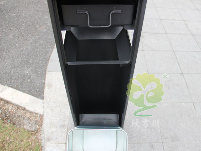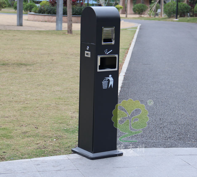 C629烤漆吸(xī)煙柱規(guī)格320*320*1200mm,呈方形,側麵(miàn)有三角鑰匙,可以打開側門,方便清理位(wèi)於內套管的煙蒂煙灰,底座分兩種,一種(zhǒng)是室內采用的(de),在底部裝有防滑墊,一種是戶外采用的,底部(bù)使用膨脹螺絲固定。外形兼具美觀性(xìng)和功(gōng)能性(xìng),實現煙蒂垃圾雙投放功能(néng),上部分收集煙灰煙蒂,下部分(fèn)收集果皮(pí)垃圾。隔緣分(fèn)離,杜絕火災。