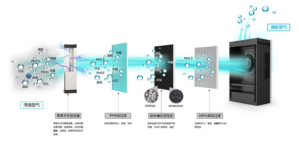 空氣消毒器廠家講等離子體(tǐ)利用特斯拉放電原理,形成(chéng)等離子體空間淨化(huà)網,直接電離病毒、細菌(jun1)、蟎蟲(chóng)、甲醛、TVOC、流感病毒(dú)、傳染源等有毒有害物質,從根本上予以殺滅(miè),同時釋放大量正負(fù)離(lí)子。采(cǎi)用高效HEPA複合濾網,增加了除(chú)甲醛、PM2.5、TVOC的效果。