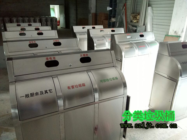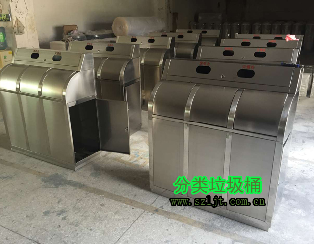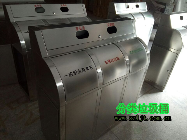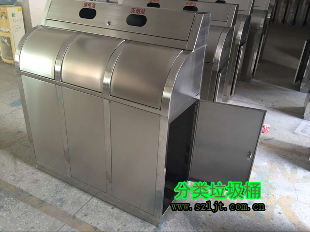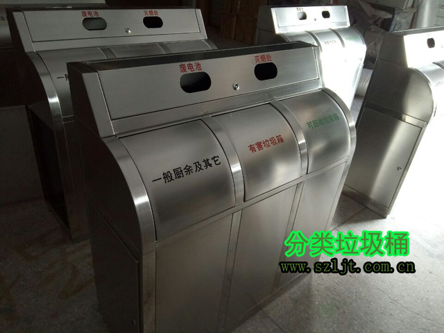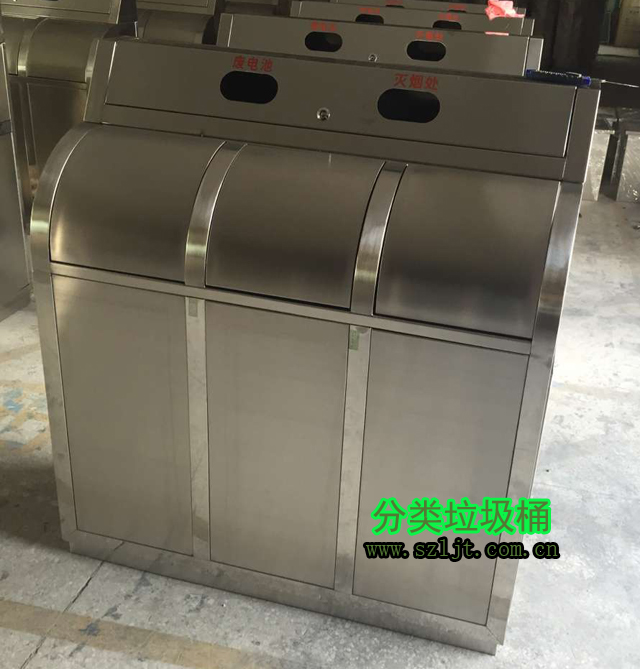 小社區物業不鏽鋼分(fèn)類垃圾桶型號xfz-c210,規格900*400*890。此垃圾桶各種小細節十分講究,根據小區社(shè)區這種特定環(huán)境量身定製。全桶由可回收垃圾(jī)、不可回(huí)收垃(lā)圾、廚餘垃圾91蝌蚪九色組成(chéng)。裏麵附帶鍍鋅內(nèi)膽,可從桶身兩側取出放進。桶蓋是推蓋式,上方還有煙頭、電池兩個收集盅。