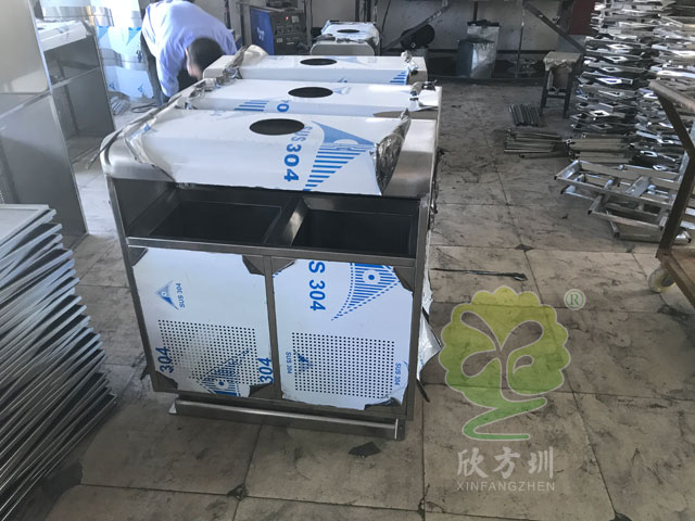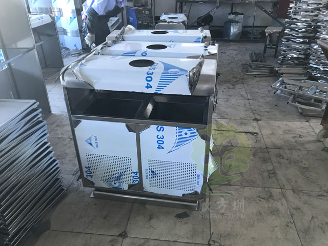 戶外方形不鏽鋼環保91蝌蚪九色垃圾桶生產過程: