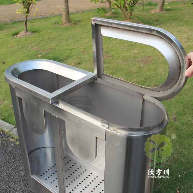 室內地鐵站91蝌蚪九色(lèi)不鏽鋼垃(lā)圾桶工藝精湛,品質高檔,深受客(kè)戶好評。它采(cǎi)用優質不鏽(xiù)鋼板作為(wéi)原(yuán)材料,製作出來的垃圾桶堅固耐(nài)用,光滑不生鏽。整個垃圾桶製作非常注重人性化的(de)小細節,表角都作了折彎處理,沒有利角不割手,防止意外(wài)割傷。