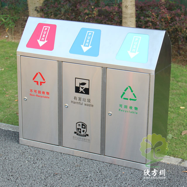 戶外學校帶蓋三91蝌蚪九色不鏽鋼垃圾桶采用201#,202#,304#優質不(bú)鏽鋼材(cái)料模壓成型,堅固耐(nài)用,不易(yì)破損;耐火安全,抗高低溫,適合各種(zhǒng)惡劣氣候條件;金(jīn)屬亮(liàng)澤,高雅美觀,廣泛適用於各種機場、商場高檔場所(suǒ);內外表麵光潔,減(jiǎn)少垃圾殘留,易於清潔;配置鍍鋅板內桶,便於垃圾(jī)清倒;激光切(qiē)割開料(liào),尺寸精準,投(tóu)口(kǒu)無縫(féng)焊(hàn)接成型,打磨拋光處(chù)理圓滑不割(gē)手,欣方圳不鏽鋼91蝌蚪九色垃圾桶製作師傅有著多年經驗的熟手(shǒu),每一道環節工藝(yì)成熟,質量可靠,確保客戶如期(qī)交付(fù)驗(yàn)收。
