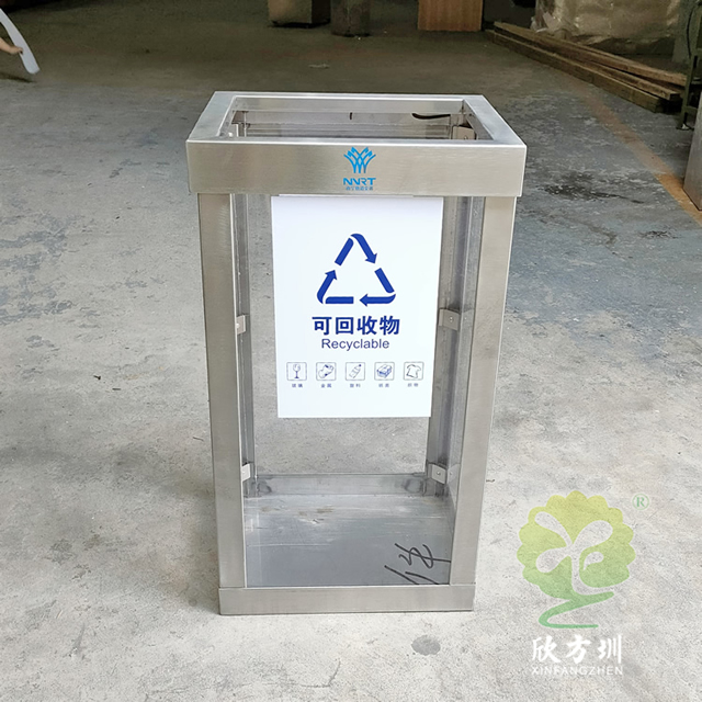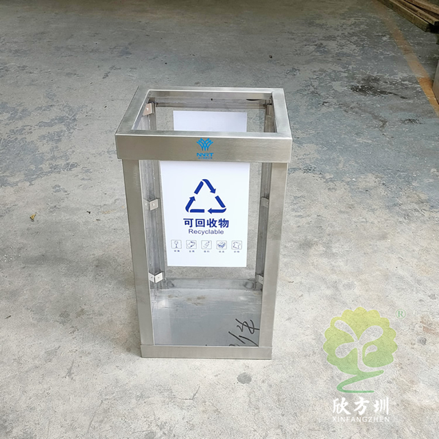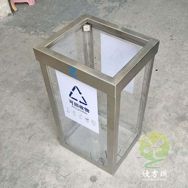 地鐵站透明防爆不鏽鋼91蝌蚪九色垃(lā)圾桶框架可以采用(yòng)201或者304不鏽鋼(gāng)板製作,方形設計可透視(shì)看見(jiàn)裏麵的廢物,透明板(bǎn)材采用了(le)亞克力板,這款垃圾桶不是真的防爆而是可以(yǐ)看到裏麵有沒有危險物品,一般都是套透明的(de)塑料袋使用,正反麵貼了一個可回收物的91蝌蚪九色標識,裏(lǐ)麵帶螺絲帽擰開方便更換亞(yà)克力板,我們欣方圳製作(zuò)過很多這種透明防爆桶基本上都是用於人群密(mì)集的地方,可以根據客戶要求定製。