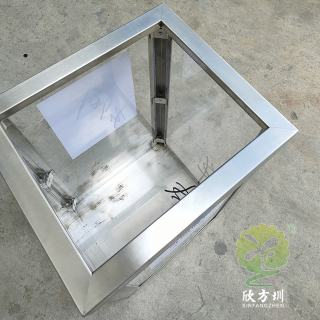 使(shǐ)用不鏽鋼板剪切、折彎、組裝(zhuāng)、焊接、打磨而成