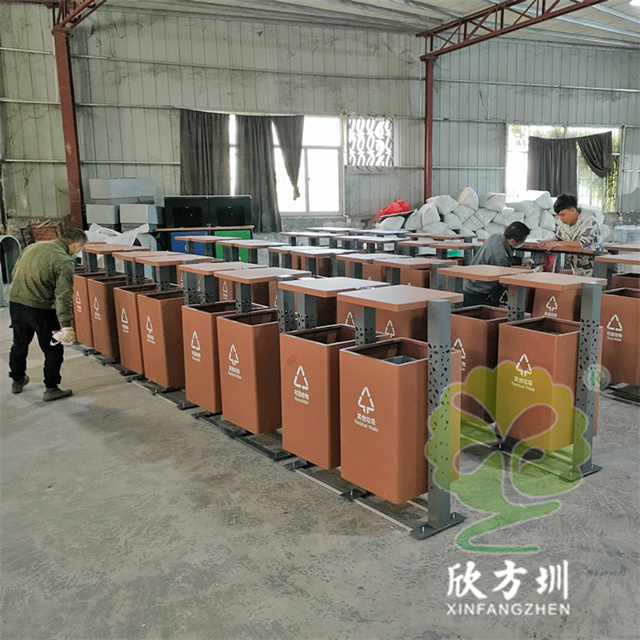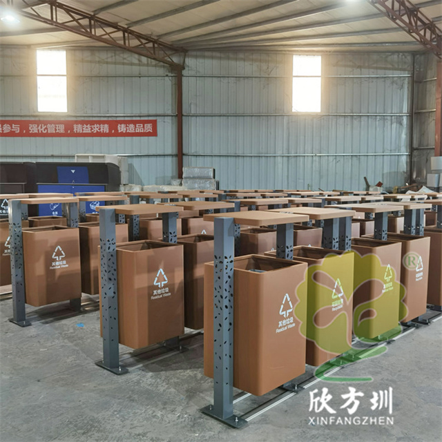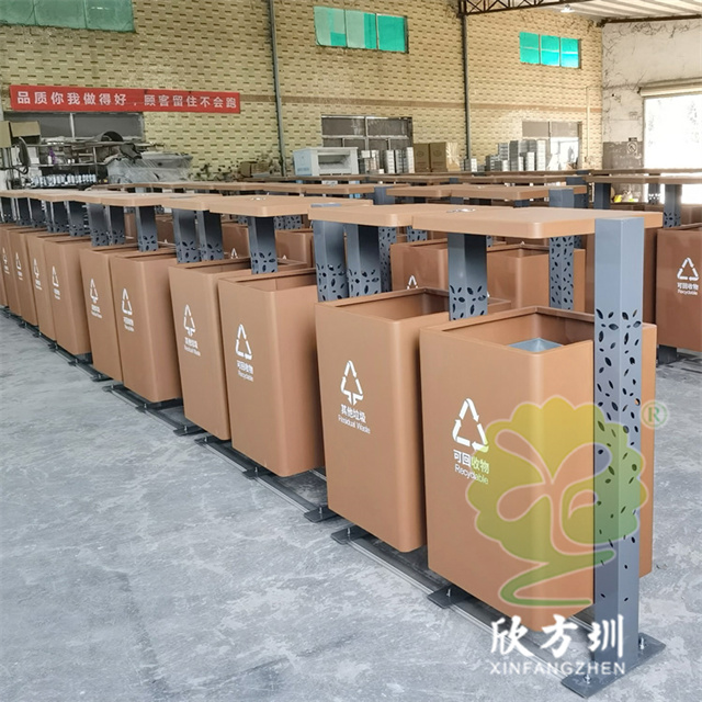 廣東惠州景區鏤(lòu)空立柱不鏽鋼(gāng)91蝌蚪九色垃(lā)圾桶整體1.0mm厚噴塑外(wài)筒,方形任(rèn)意組合式多91蝌蚪九色設計,可(kě)以選擇用不鏽鋼板製作桶身,桶身表麵噴塗噴塑了(le)米白色,背後可(kě)使用三角鑰匙開始開(kāi)門取出內筒(tǒng),內筒鍍鋅板0.4mm厚,正(zhèng)麵絲印(yìn)了最新(xīn)國標91蝌蚪九色標識,有現成的網版可以免(miǎn)費絲(sī)印91蝌蚪九色標(biāo)識。