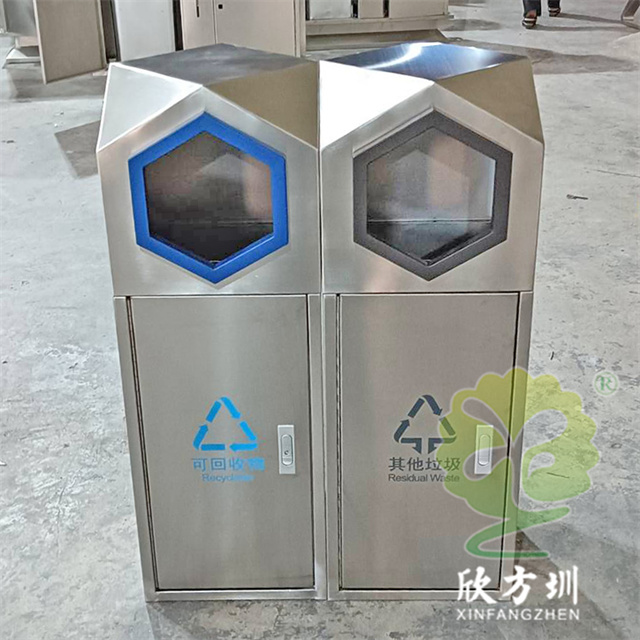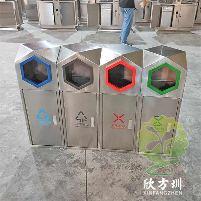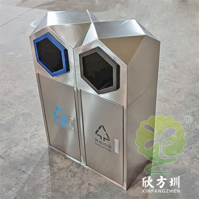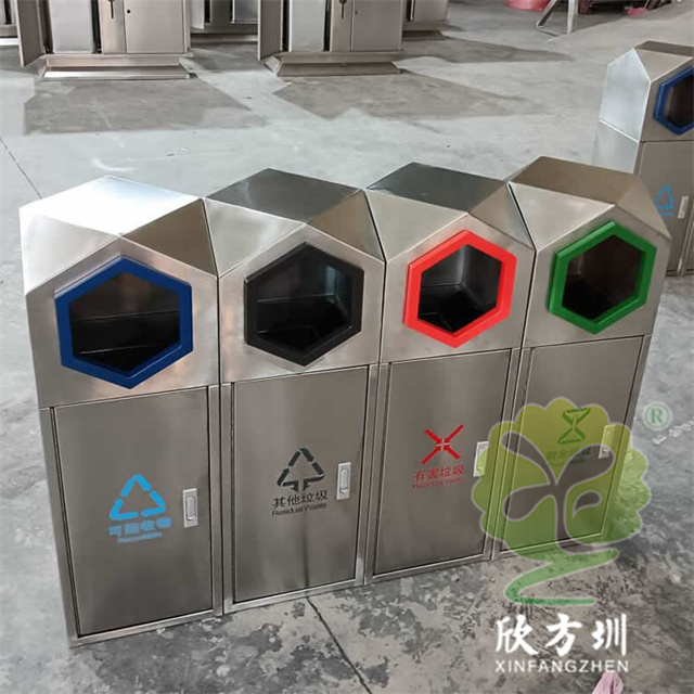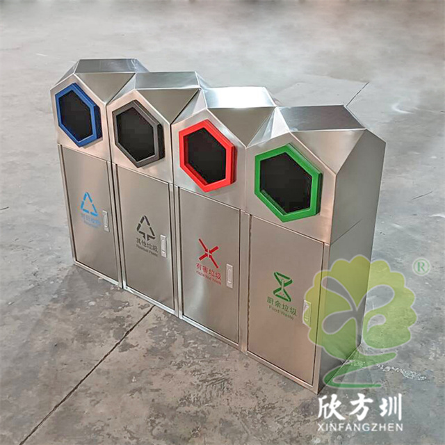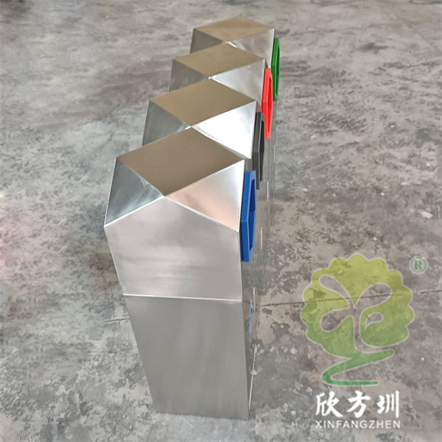 戶外公園組合式菱形不鏽鋼91蝌蚪九色(lèi)垃圾桶可以采用201或者(zhě)304不鏽(xiù)鋼(gāng)板製作,單筒組合式頂部菱形設計,六邊形投口不鏽鋼烤(kǎo)漆四色噴塑,無煙灰盅門板磁吸方便取出內筒,此款果皮箱可以定製鍍鋅板烤漆,門板可絲網印刷中英文國(guó)標91蝌蚪九色標識,支持做腐刻、電鍍、拉(lā)絲、防指(zhǐ)紋處理等工藝。