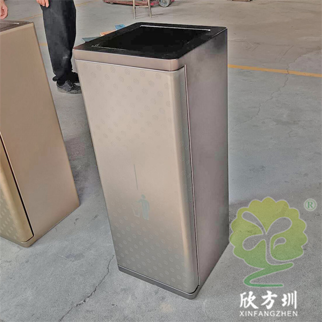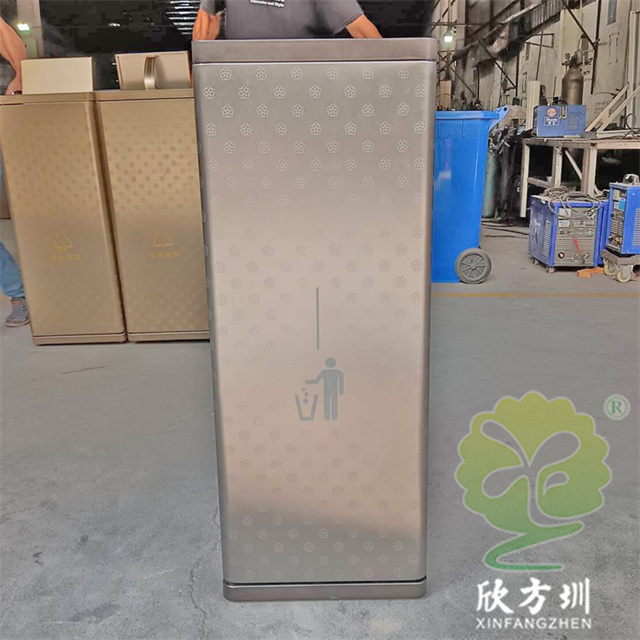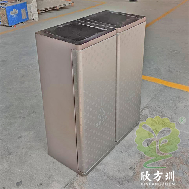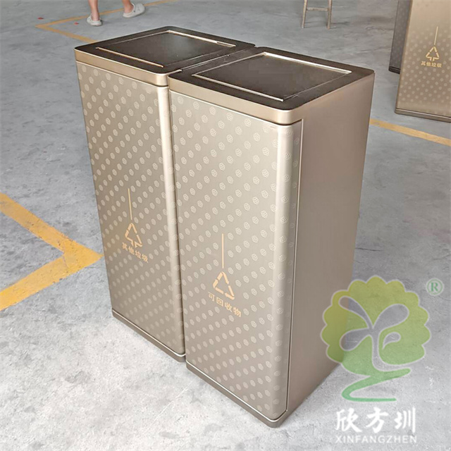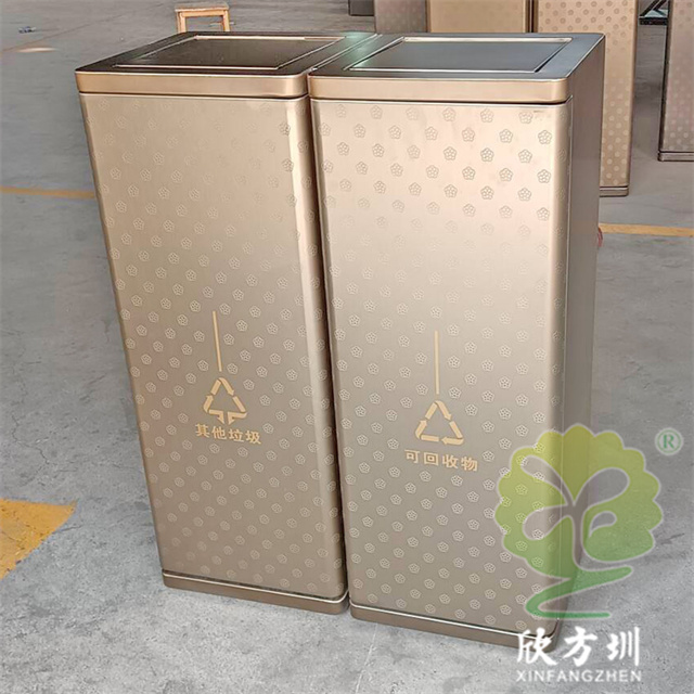 室內電鍍腐刻不鏽(xiù)鋼91蝌蚪九色垃圾桶單筒可以采用201/304不鏽鋼板製造(zào),兩個款式一款是單筒一款是兩分(fèn)類方形帶搖擺蓋(gài)設計,雙筒用(yòng)8*8mm方通相連,門板腐刻印花工(gōng)藝(yì),不(bú)鏽鋼金屬表麵做了電鍍黑鈦和香檳金工(gōng)藝,正麵抽拉式導軌抽可以取出(chū)內膽,門板中心位置絲網印刷最新中英文國標分(fèn)類標識或人頭標。