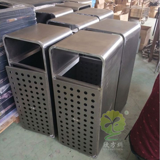 廠家批發鋼板衝孔垃圾桶采用優質冷軋鋼材料經激(jī)光切割剪鈑下料、折彎、衝壓、焊接、打磨、等工(gōng)藝(yì):表麵經(jīng)過除油、噴(pēn)砂防(fáng)鏽處理後,再進行酸洗磷化處理;表(biǎo)麵(miàn)清理幹燥後整(zhěng)體進行靜電噴塗或烤漆處理,靜電噴塗是(shì)經過流水線高溫固化爐固化後再出爐冷卻(què),加(jiā)工後的(de)塑粉附著力強,不易剝(bāo)落,這樣戶外防(fáng)鏽效果(guǒ)才(cái)會好。