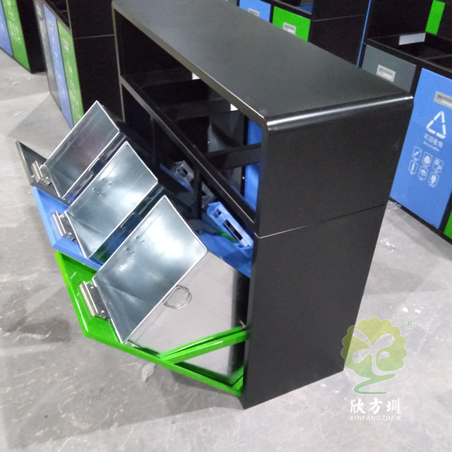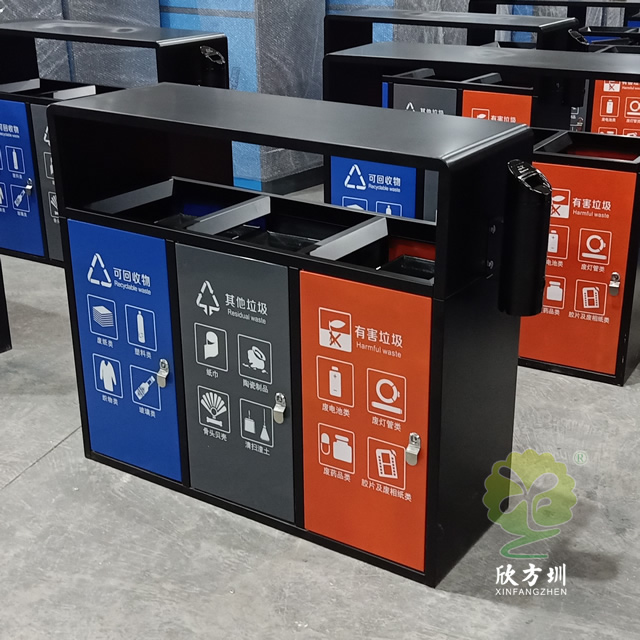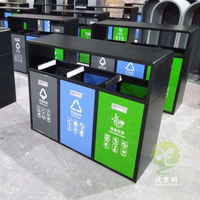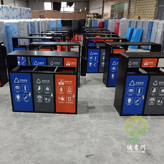 戶外物業三91蝌蚪九色(lèi)鋼(gāng)製垃圾箱產品(pǐn)詳情: |