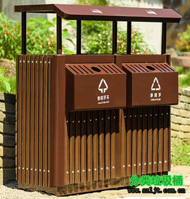 公園景區古典鋼木(mù)分(fèn)類垃圾桶桶身(shēn)采(cǎi)用優質進口防腐木、進(jìn)口山樟木或水曲柳製作,可抑製(zhì)生物、微生物(wù)的寄生、繁殖與侵蝕,延長木材在戶外(wài)環境中的使用壽命。表麵經過除蟲,防蟻,防腐,烘(hōng)幹等專業處理後加工成型,經久耐用,防腐美觀。桶蓋(gài)/內膽采用FRP玻璃(lí)鋼(gāng)材料製造,具有防腐、防生鏽、易清潔等特點。底座采用玻璃鋼纖維製作,從根本上(shàng)解決了防腐、防盜、生鏽的問(wèn)題,產品在戶外的使用壽命大大增強。此(cǐ)款垃圾桶無(wú)論(lùn)是從外觀,性(xìng)能還是環保方麵來講都十分優越,尤其適合擺放在花園,公園,小區,學校,街道(dào),景區,遊樂園等場所(suǒ),備(bèi)受客戶青睞。