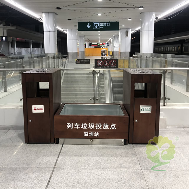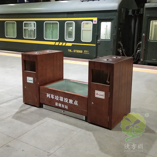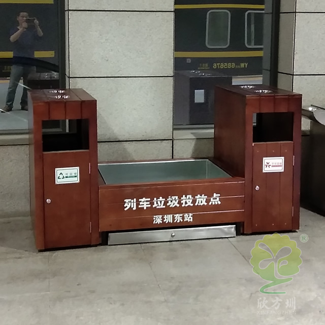 【產品型號】:火車站大型鋼木(mù)91蝌蚪九色垃圾(jī)箱XFZ-G282